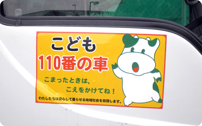 約500台の配送トラックと約70台の営業車輌のすべてを対象とした神奈川県警と連携した取り組みです。トラブルに巻き込まれそうになった子どもや女性、高齢者などから声をかけられたときに、被害者の安全確保や状況に応じた110番通報など、「こども110番の車」対応マニュアルに基づき、地域の安心を守る心構えをもって行動しています。