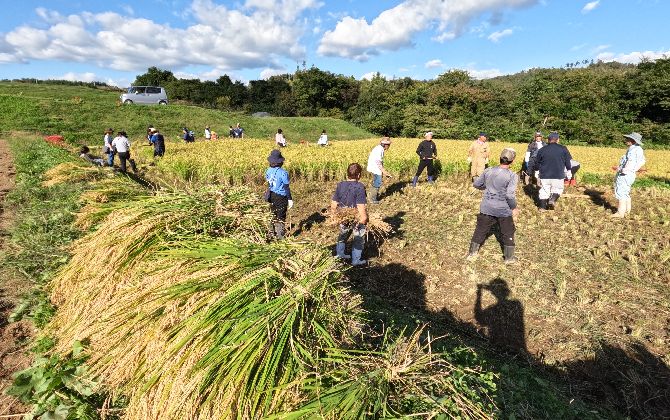 9月27日~9月28日の2日間にわたり、岩手県花巻市東和町にて「JAいわて花巻で稲刈り体験」を開催し、組合員24名が参加しました。