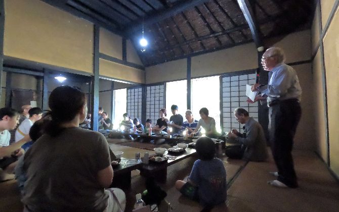 最後に、18世紀中頃の建物と推定される重要文化財「旧小原家住宅」を訪れました。この家に実際に住んでいた小原さんにお越しいただき、住宅で過ごしたお話を聞きながら昼食をいただきました。