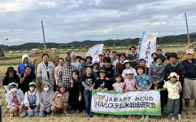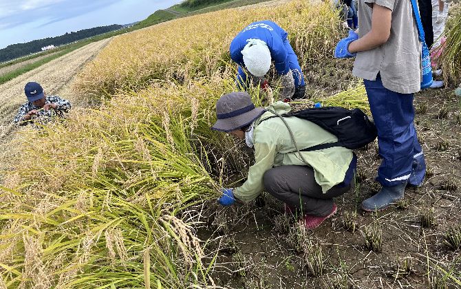 10月4日~5日の2日間にわたり、宮城県の米産地JA新みやぎで産地交流会「JA新みやぎで稲刈り体験」を開催し、組合員24名が参加しました。