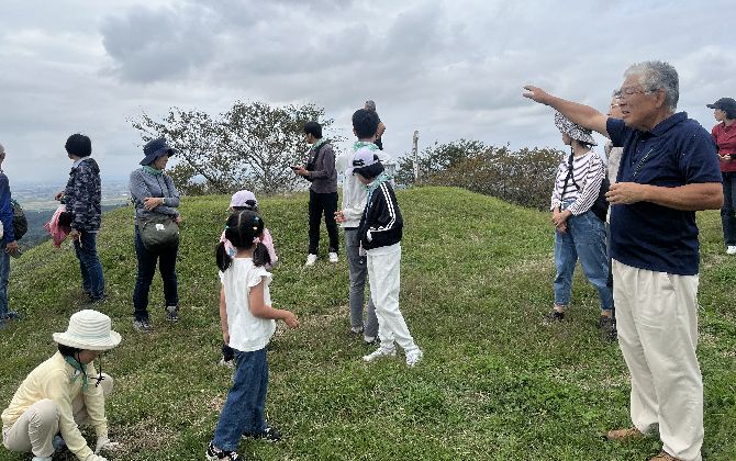 次に向かった加護坊山では、見渡す限りの田んぼと畑に囲まれた景色を楽しみながら、生産者西澤さんに世界農業遺産に登録された大崎耕土や加護坊山の歴史を教わりました。