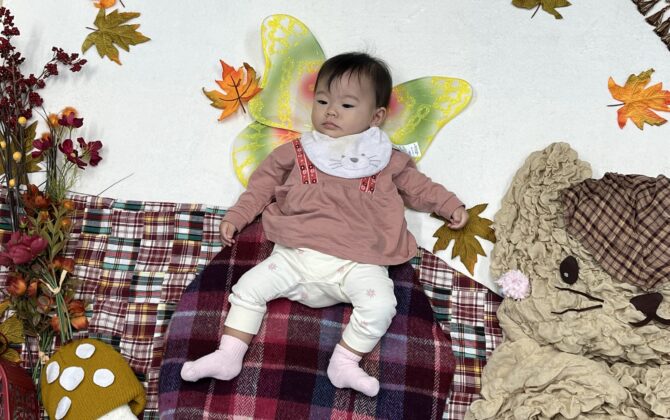 秋のお庭でお昼寝アート