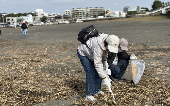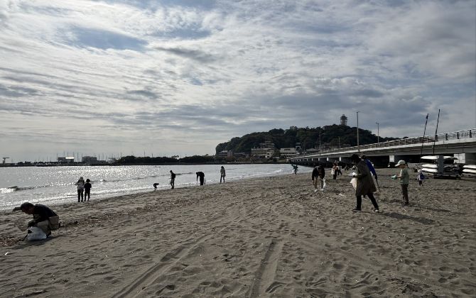 11月8日、藤沢市の片瀬東浜にて20組38名が参加し、ビーチクリーンを行いました。当日は天気に恵まれ、気持ちよく清掃活動を行ことができました。