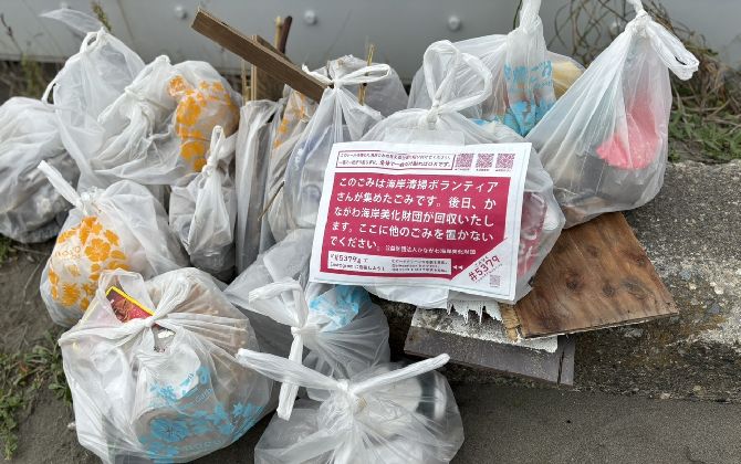 集めたごみはかながわ海岸美化財団が回収してくれます
