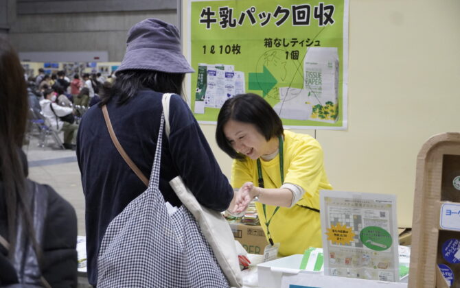 『こんせん72』でおなじみのホクレン農業協同組合連合会のブースにて未使用タオルの回収が行われたほか、奨学生の学習支援となる「未使用ノート」の寄付、牛乳パック10枚を『箱なしティシュペーパー』と交換など、家にあるもので環境や福祉へのアクションとして参加ができるさまざまなブースを設置しました。