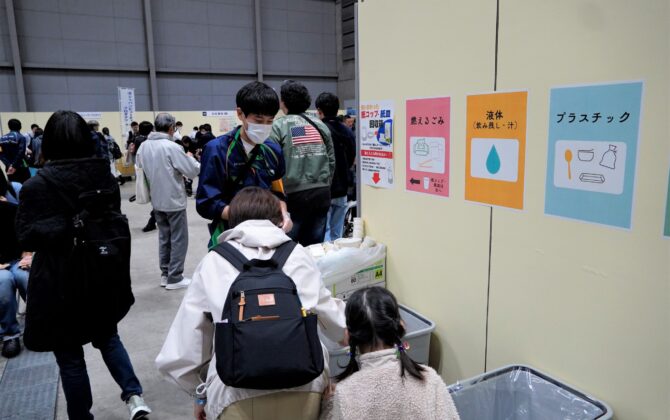 また、おいしい試食を楽しんだあとに出るごみについても、パルシステム神奈川らしい取り組みを行いました。試食で使用した紙皿や紙コップを会場内で「燃やすごみ」とは別に回収し、「箱なしティッシュペーパー」の原料の一部としてリサイクルしました。