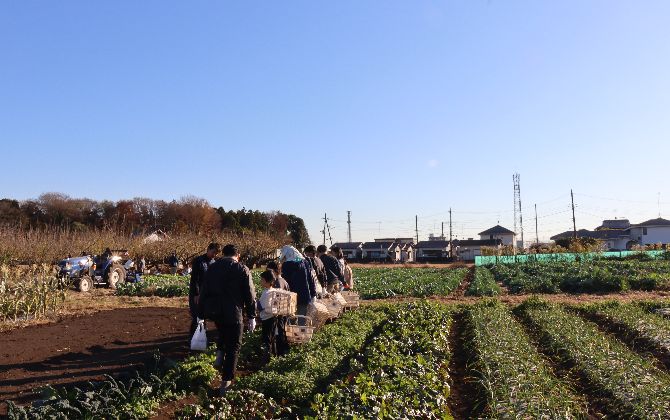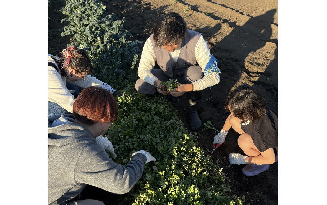 12月7日、冬の澄んだ空気のなか、当組合のオリジナルカタログ『いいね!かながわ』の新産地、大和市上和田にある株式会社峰農園で収穫体験イベントを開催し、9組25名の組合員が参加しました。