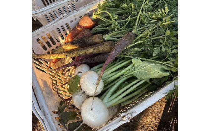 - 有機で、野菜を育てているとのこと。カブや人参の皮ごと食べたいと思います。