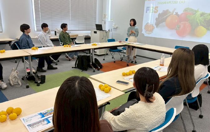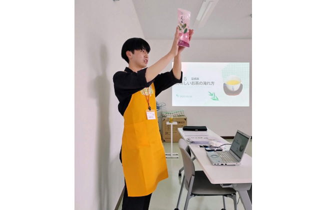 日本大学生物資源科学部食品ビジネス学科の川手ゼミとの産学連携。4年目となる2025年度は、神奈川県農協茶業センターの足柄茶、ジョイファーム小田原の緑(あお)みかん商品のプロモーションに取り組みました。