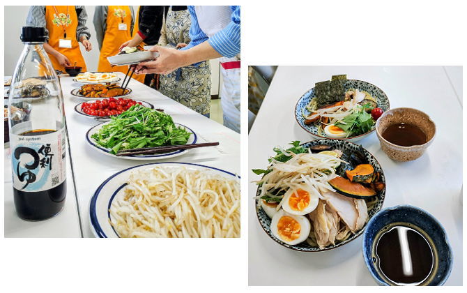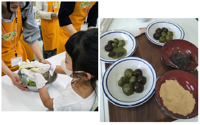緑みかんの酸味をいかしたつけダレを考案し、パルシステムの便利つゆでアレンジしたつけ麺は、具材をバイキング形式にして楽しみました。足柄茶の特徴をふまえたおいしいお茶の淹れ方を実演し、お茶パウダーを使った白玉デザートをみなさんで手作りしました。緑みかんのポプリ作りなどアイデアがつまった企画となりました。