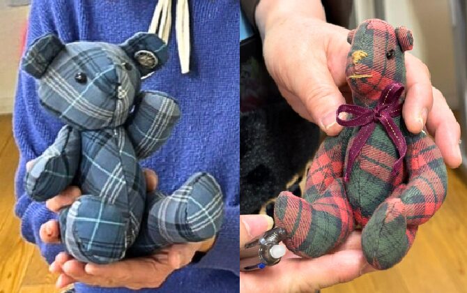 交流会では、事前にリペアした実物やエピソードの披露をお願いしていたこともあり、参加者ご自身でリペアしたものやアップサイクル(※)作品、思い出の品などを見せていただきました。