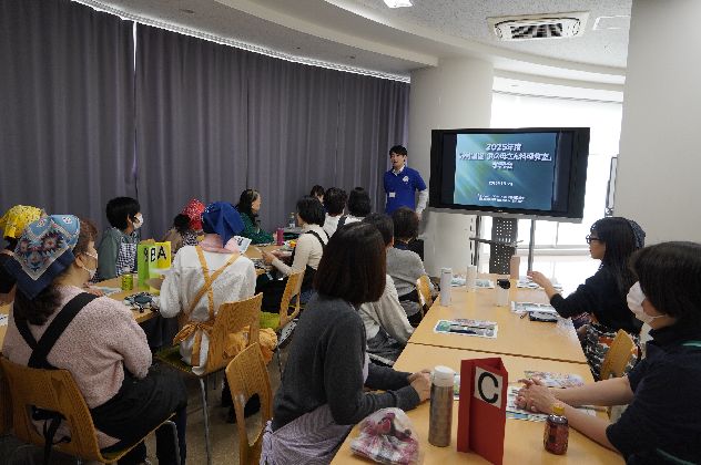 調理に先立って行われた学習会では、野付の紹介や野付漁協の取り組みについての動画や若手漁師の思いのこもった動画を見たあと、北海道漁連の方からさらに詳しい話をうかがいました。野付漁協では資源管理型の漁業をすすめており、乱獲を避けるために漁獲数を管理したり、女性部を中心に森への植樹活動を行ったりするなど、「獲る漁業から育てる漁業」の取り組みを行っているとお話しいただきました。
