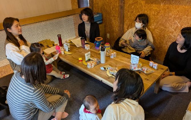 おしゃべりはひとりずつのフリートークで、おもに子育てについての相談などを和気あいあいと話しました。