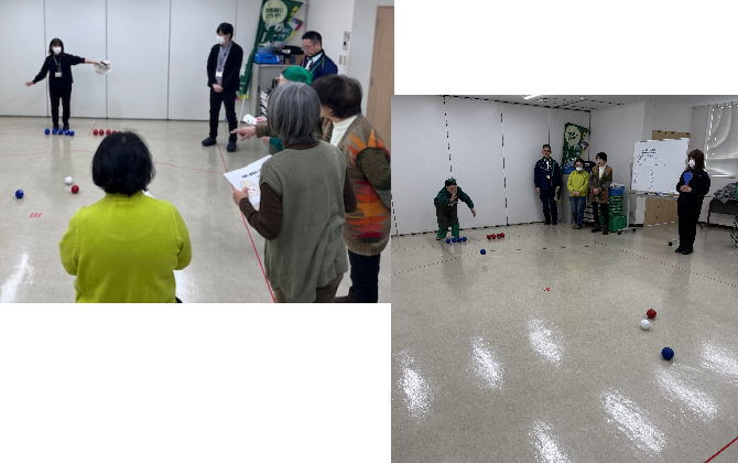 ボッチャは2グループに分かれ、柔らかく弾まないボールを投げ点数を競うゲームです。
