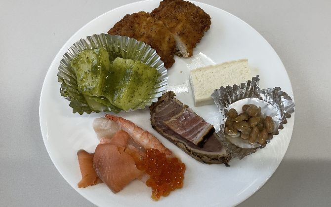 料理を待つ間に視聴してもらった野付漁協に関する動画により、海の環境の大切さ、その後に試食したほたてなどのおいしさのひみつにも触れていただけました。