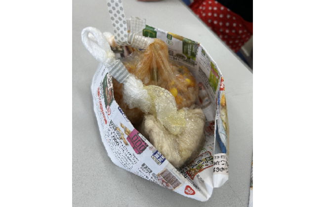 作ったチラシのお皿を使っての試食では、子どもたちが完食してしまうほどのおいしさで、家で試しますとの声をいただきました。