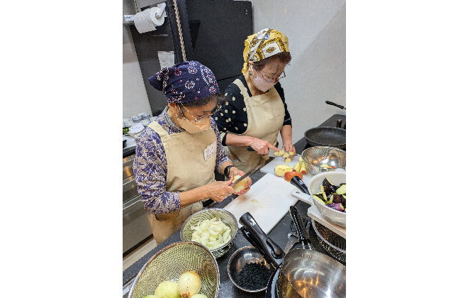 手際よく調理する食育ぱっくん隊のおふたり