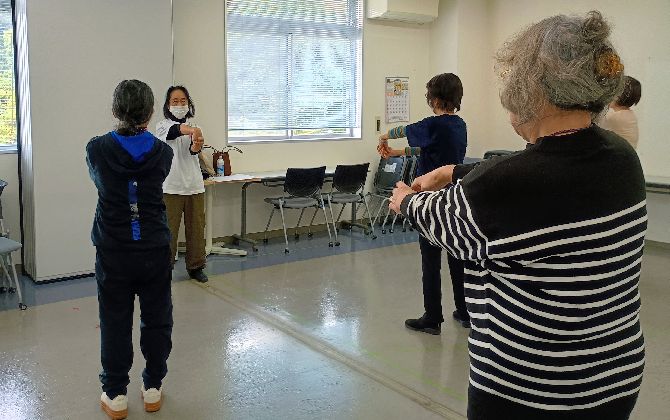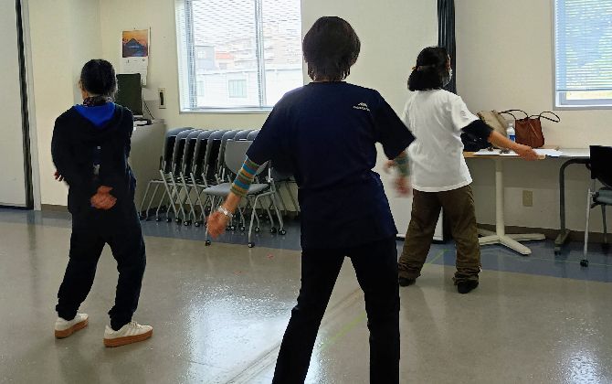 横浜中センターにて、まなびパルの講師を招いて太極拳を行いました。からだならしの体操からスタートし、講師の動きを見ながら最終的には二十四式太極拳までを学びました。