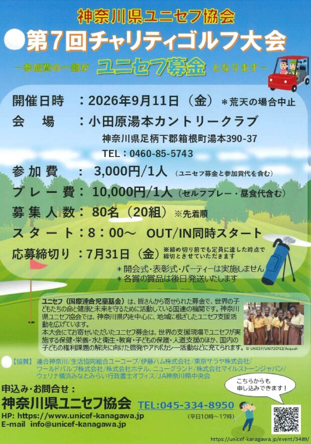 参加費の一部がユニセフ募金となるゴルフ大会を開催します。