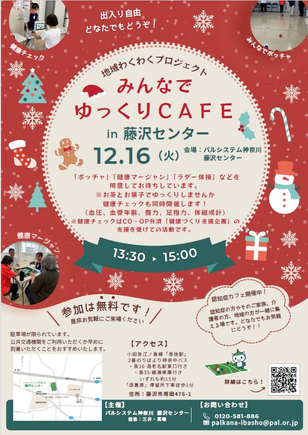 毎月好評♪藤沢センターで開催している「みんなでゆっくりCAFE」