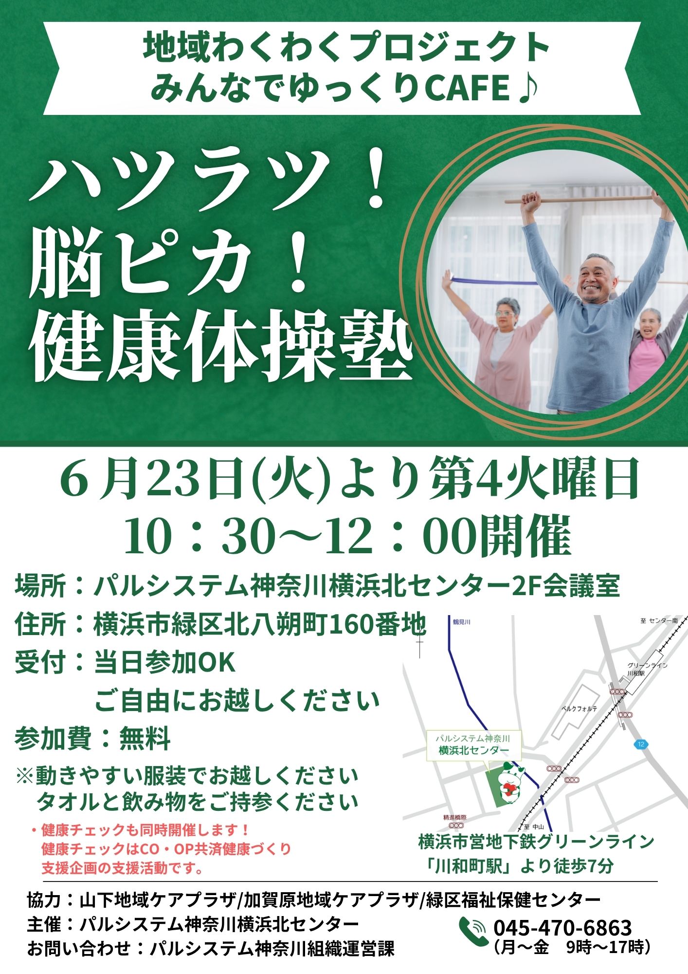 | 主催 | 主催:パルシステム神奈川横浜北センター 協力:山下地域ケアプラザ 加賀原地域ケアプラザ 緑区福祉保健センター |