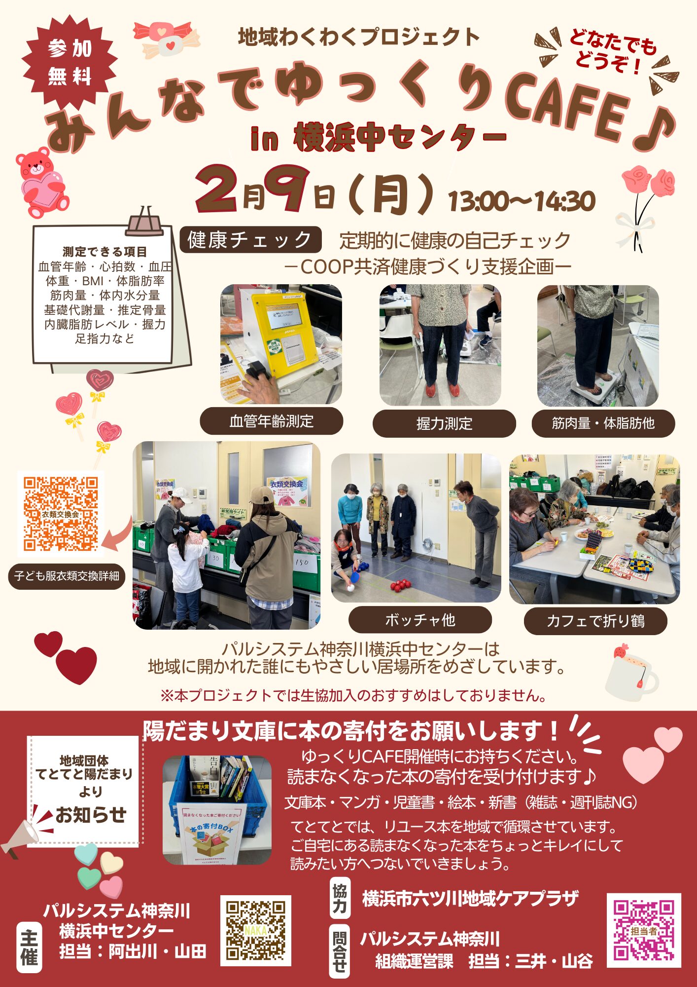 みんなで ゆっくりCAFE in横浜中センターは 子ども服の衣類交換会の他