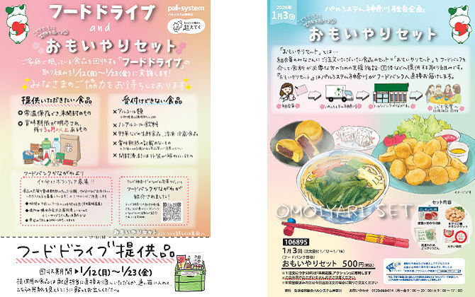 ご提供いただきました食品および、ご注文いただいた『おもいやりセット』は、パルシステム神奈川から(公社)フードバンクかながわを介して、食料が必要な方を支援する施設・団体などへ提供いたします。