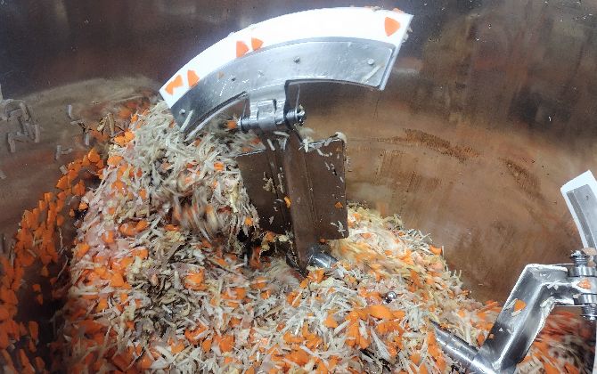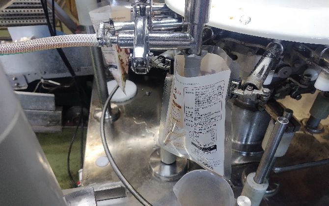 具材と調味液を充てんしたあと、真空工程へ進みます