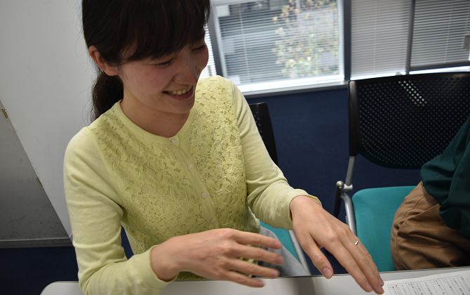 手に塗る一瞬だけでも 香りに癒やされ、「自分 へのごほうびタイム」の ように感じてもらえたら うれしいです!(開発協力した職員の方々)